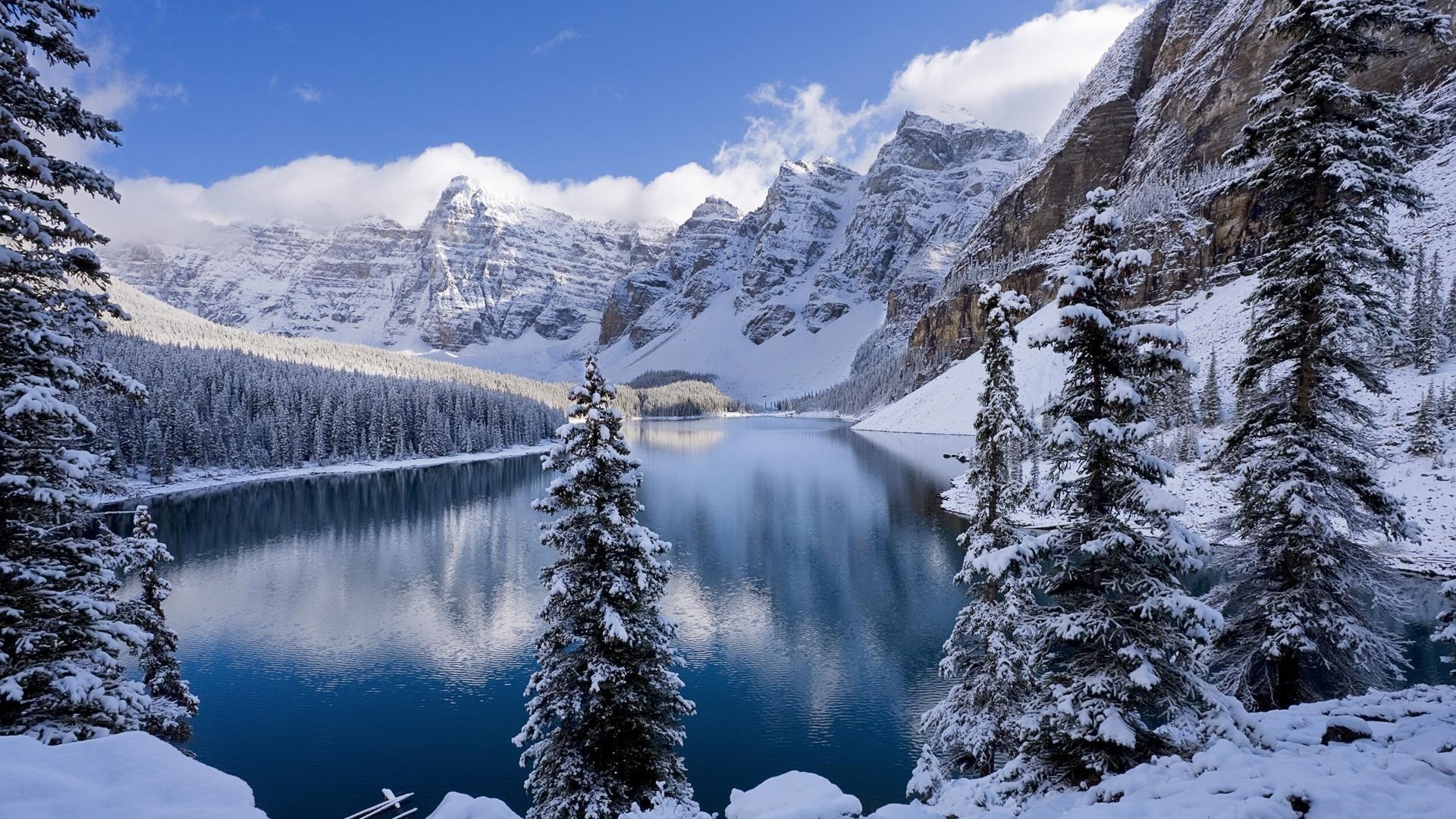 Raggi di sole che si insinuano attraverso la foresta invernale