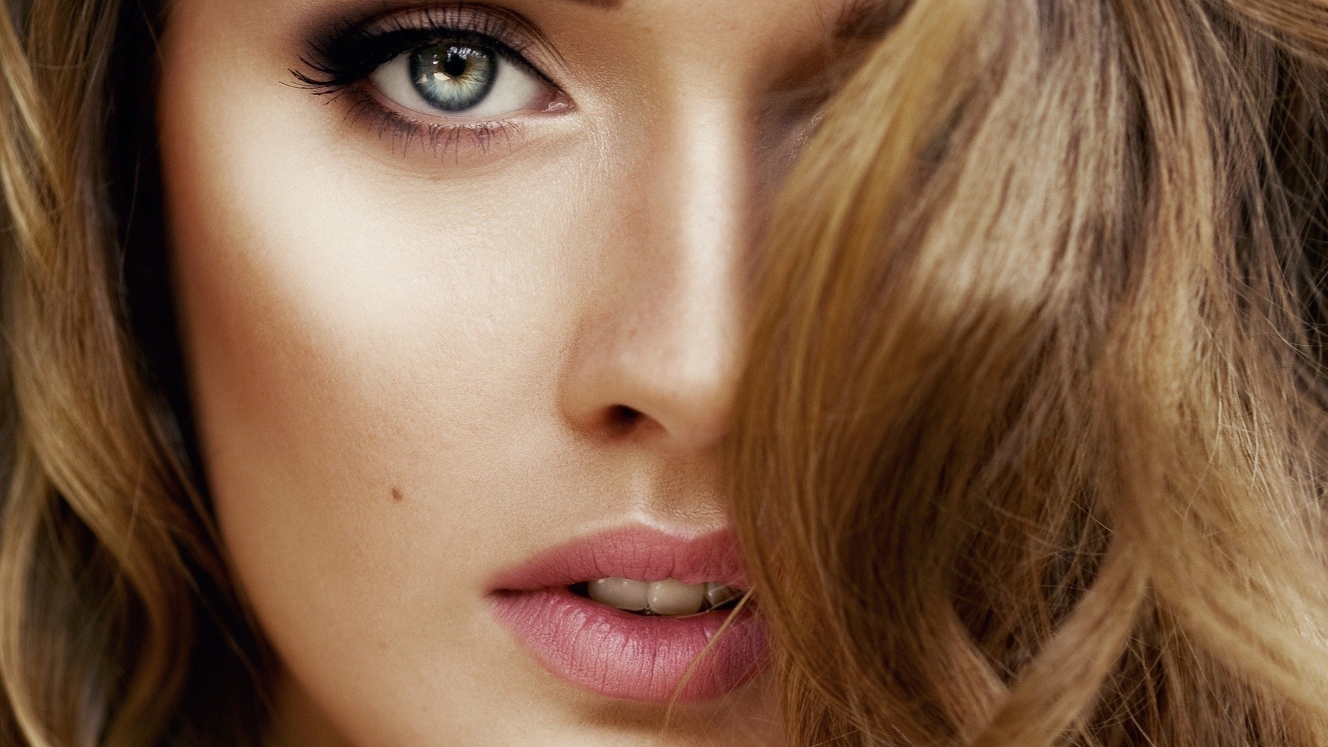 Bella ragazza con gli occhi marroni su sfondo chiaro