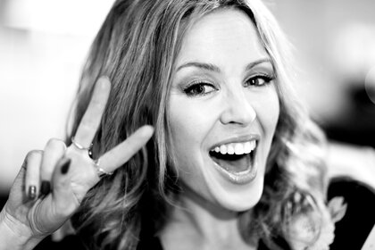 Occhi azzurri felici vicino a un ramoscello con fiori rosaOcchi azzurri felici vicino a un ramoscello con fiori rosa