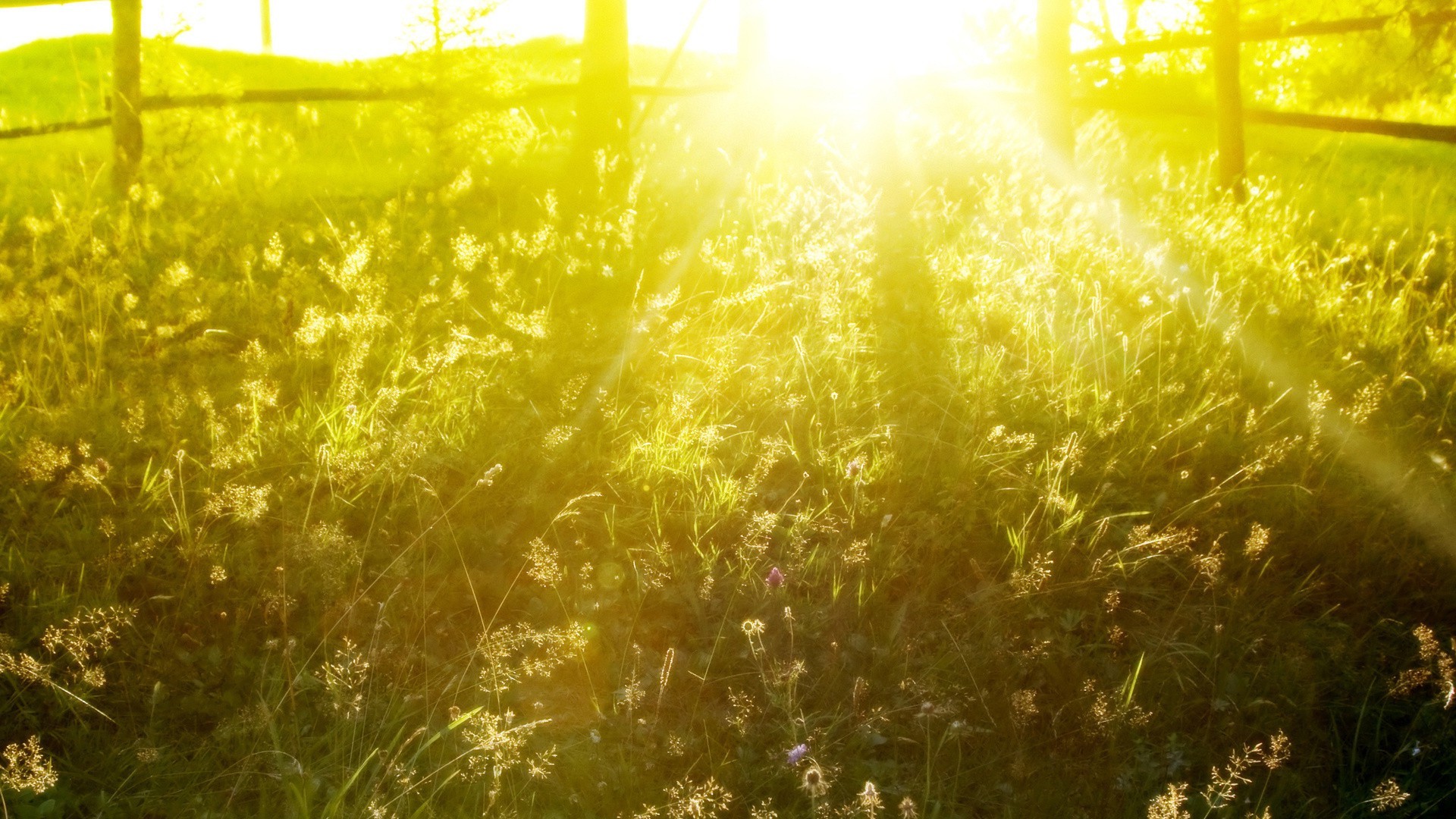Qualcuno scende dai raggi del sole. Immagine dei cartoni animati
