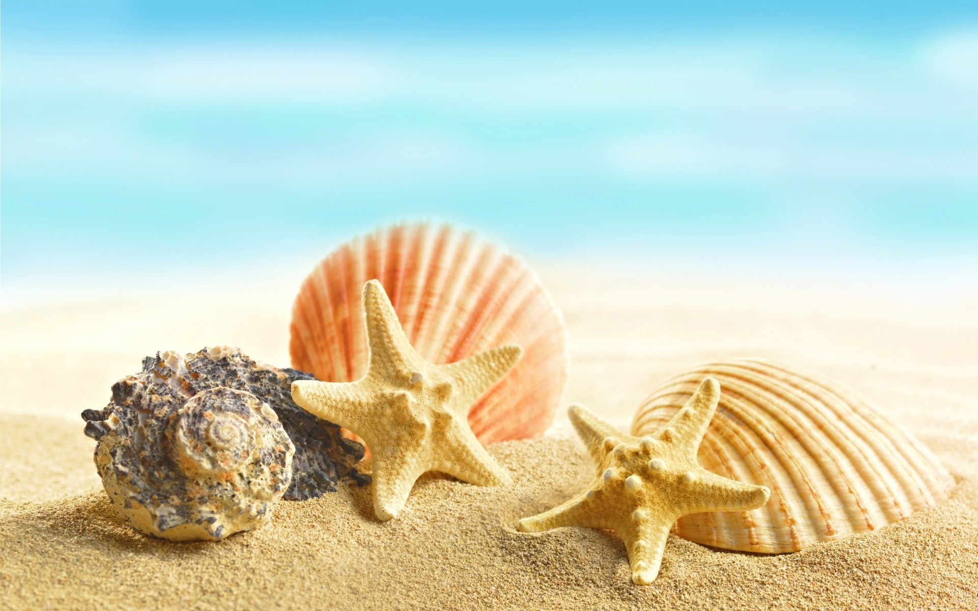 Stelle marine e conchiglie sulla sabbia