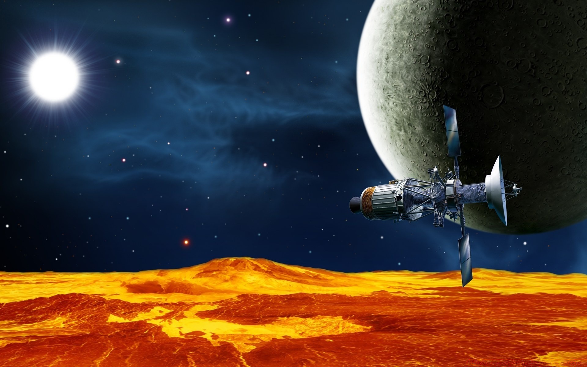 Astronave vicino alla luna sul pianeta