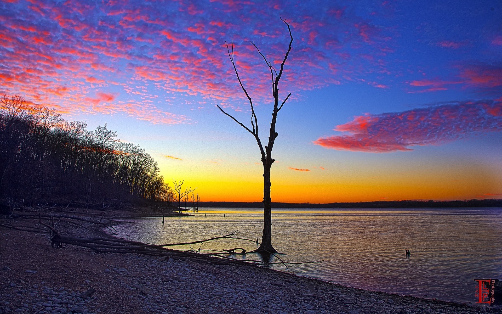 Tramonto sulla spiaggia con pianta esotica
