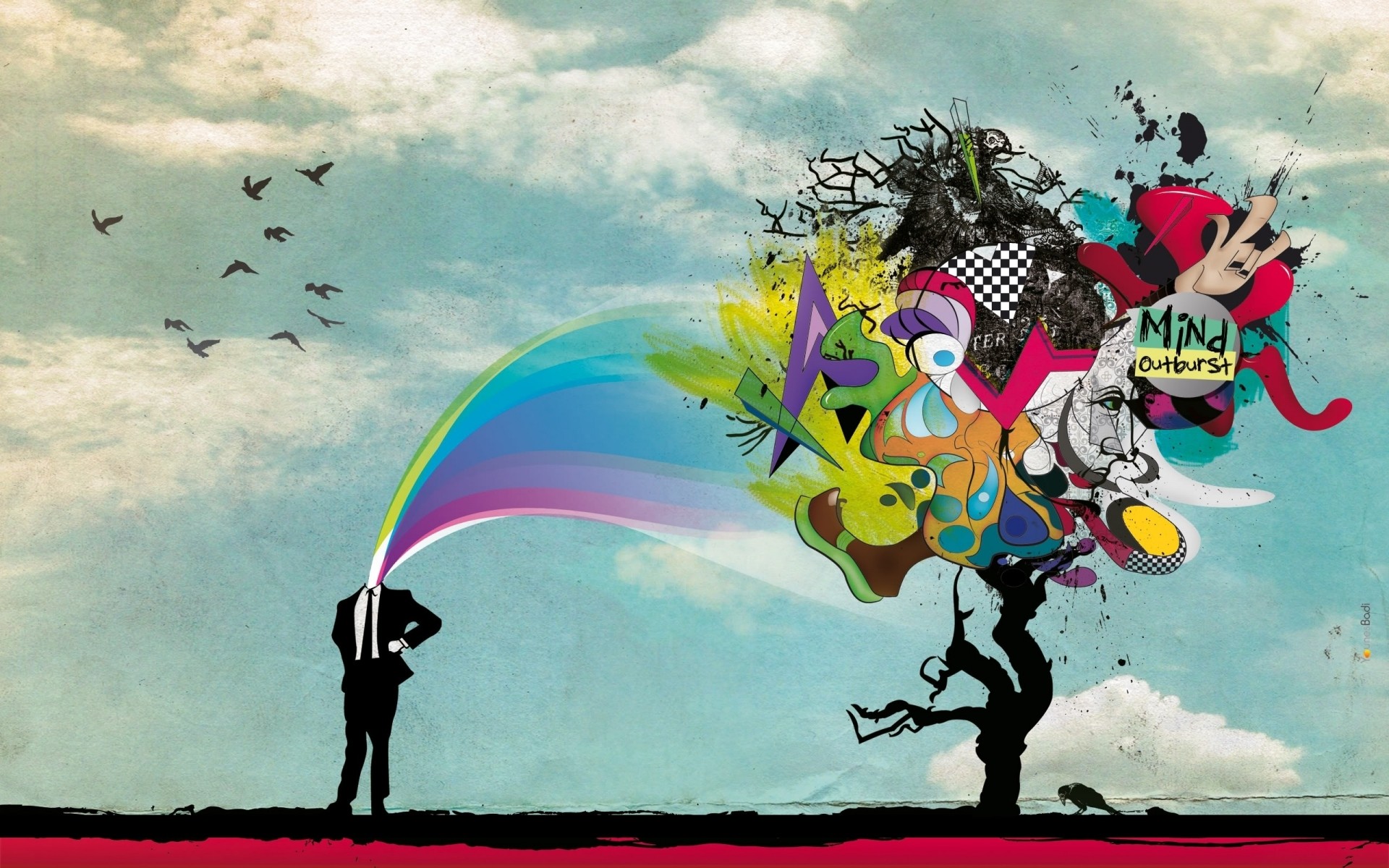 Arcobaleno che scorre con molti oggetti dal corpo di Ya-Man