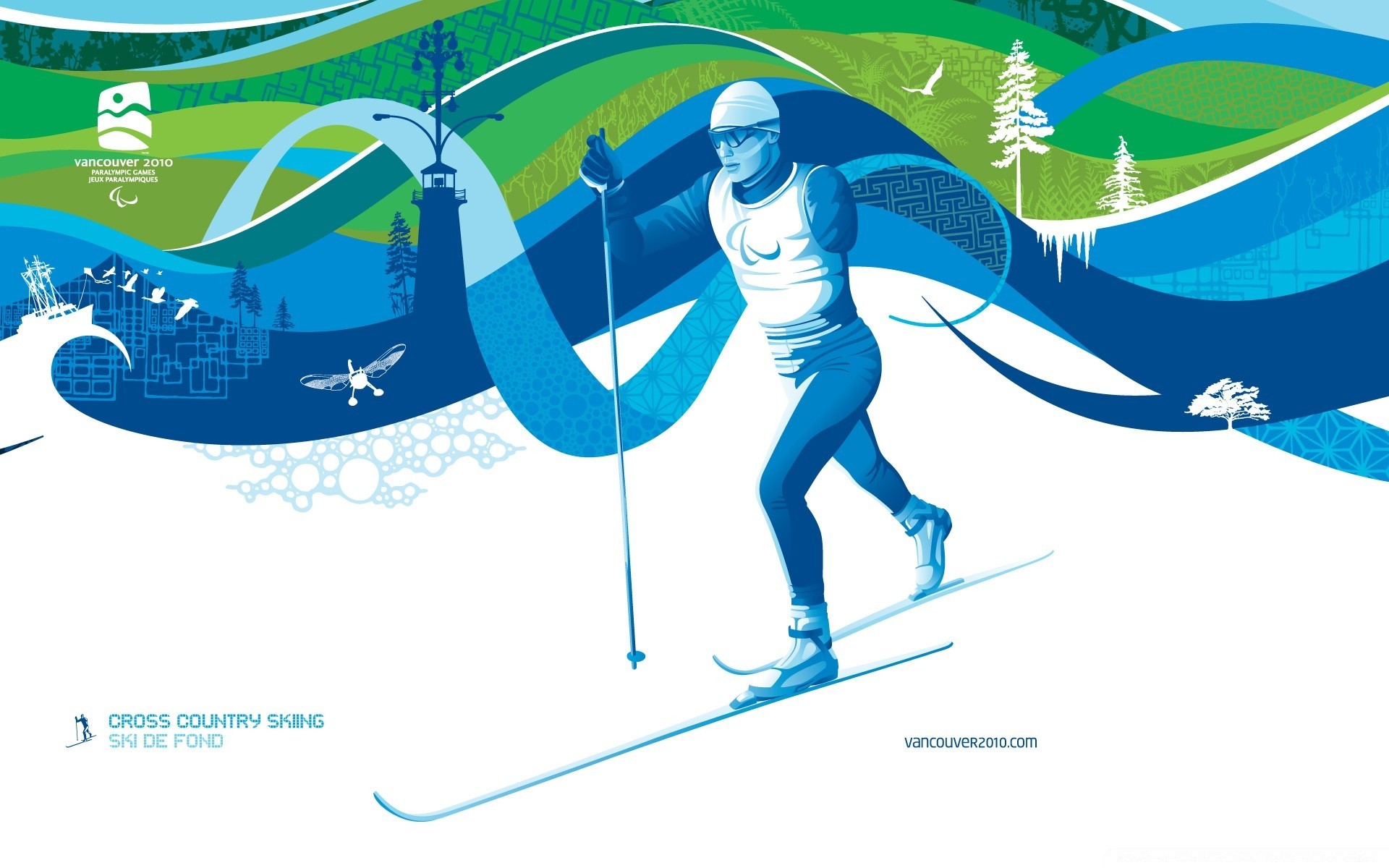 Illustrazione sportiva con un uomo sugli sci