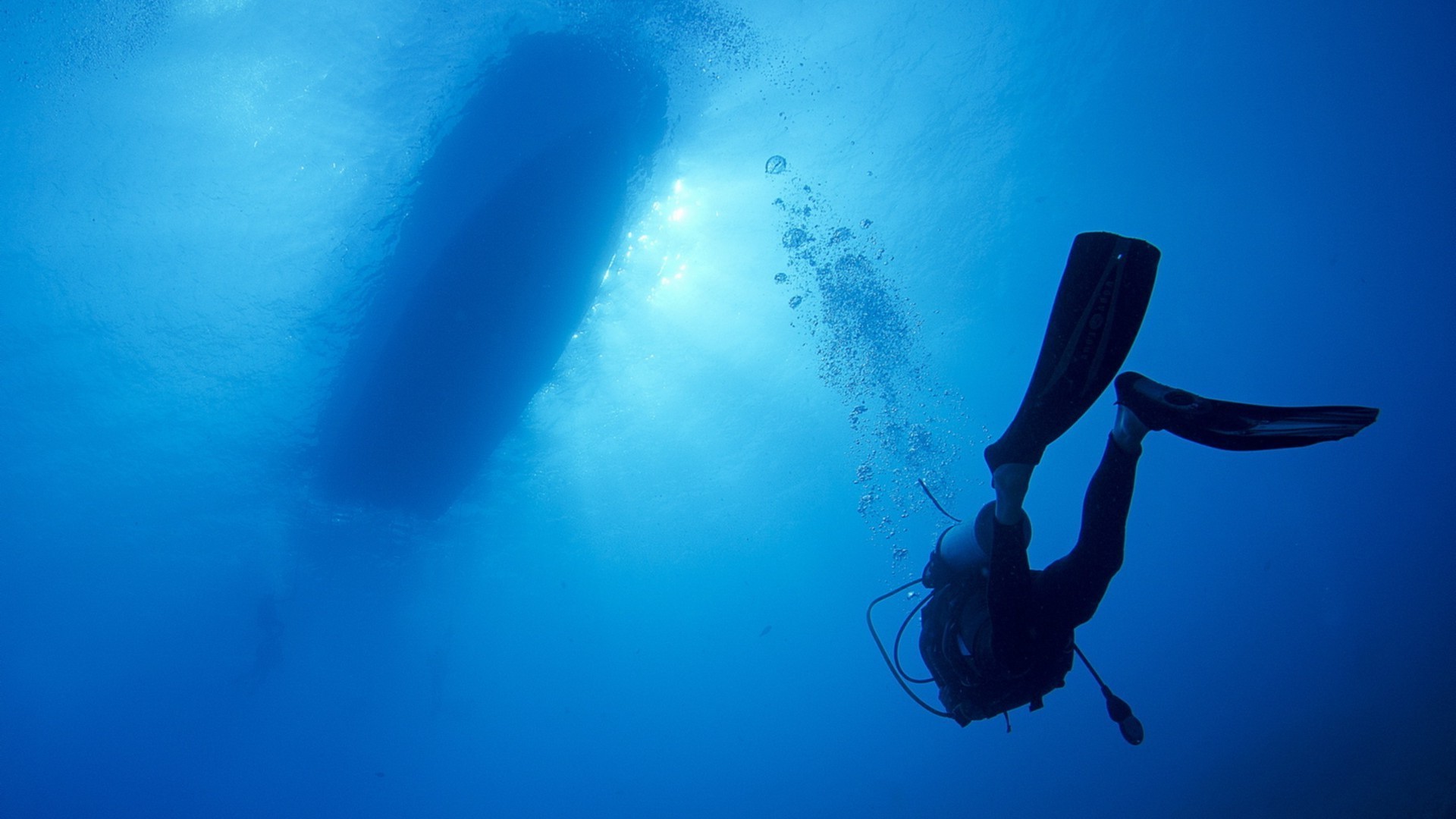 Il subacqueo galleggia dal fondo del mare alla barca