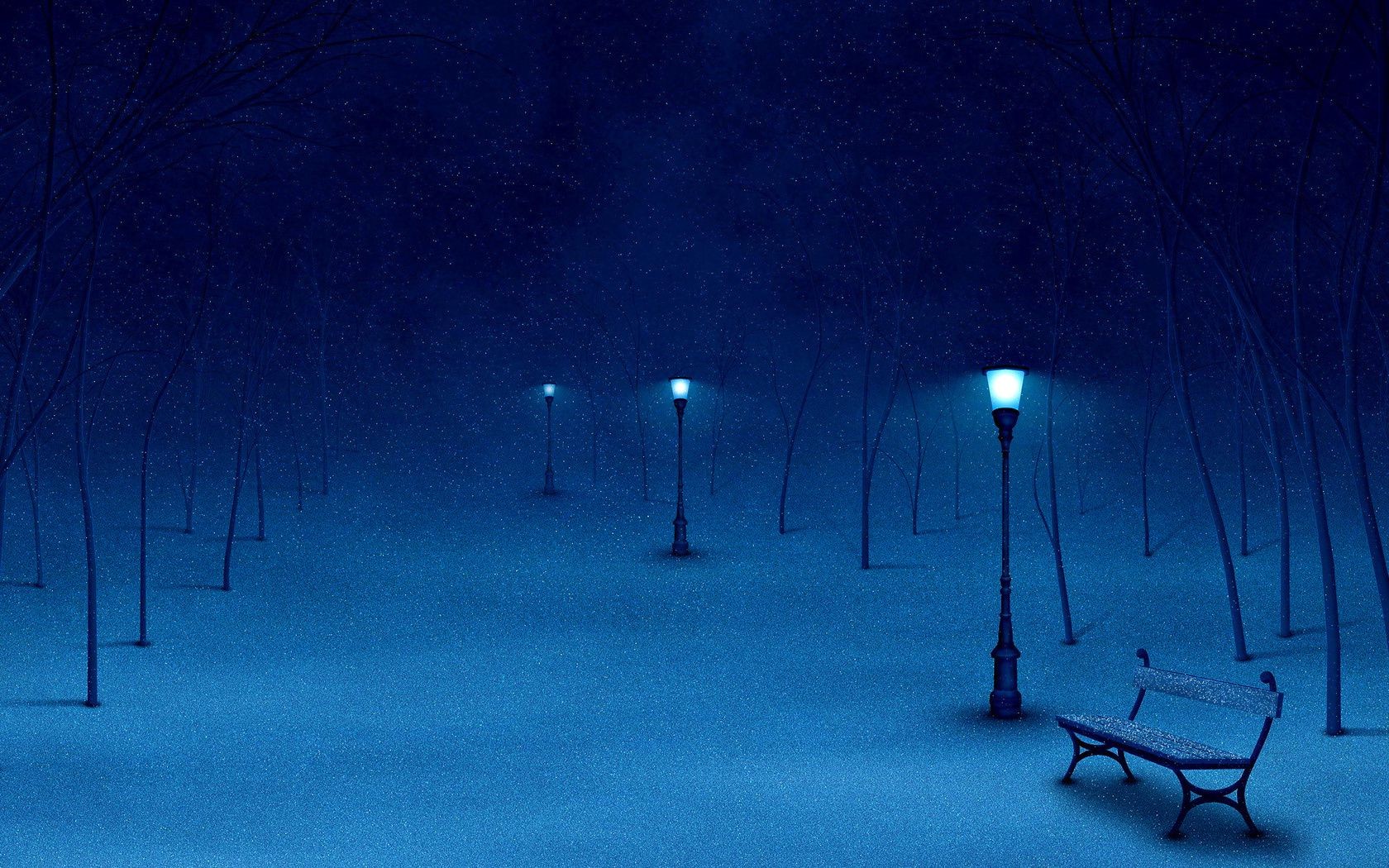 Strada nella neve illuminata dalle lanterne