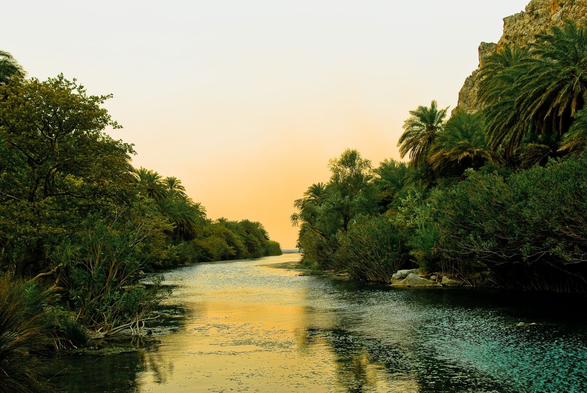 L'erba cresce sulle rocce nel mezzo di un fiume veloce