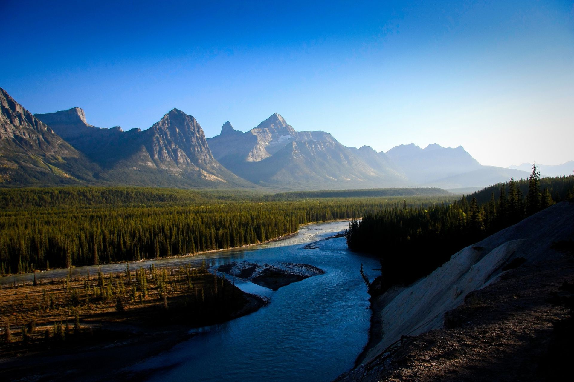 Fiume cristallino che scorre lungo la montagna