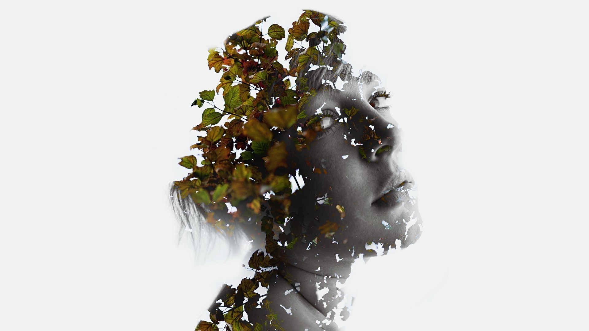 Faccia della ragazza trattata nello stile della natura