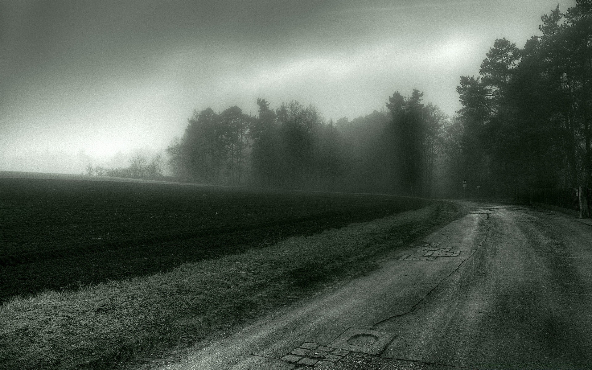 Strada di campagna nebbiosa
