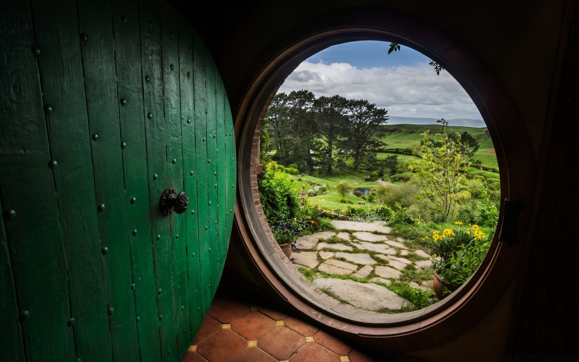 Vista dalla porta rotonda sul paesaggio