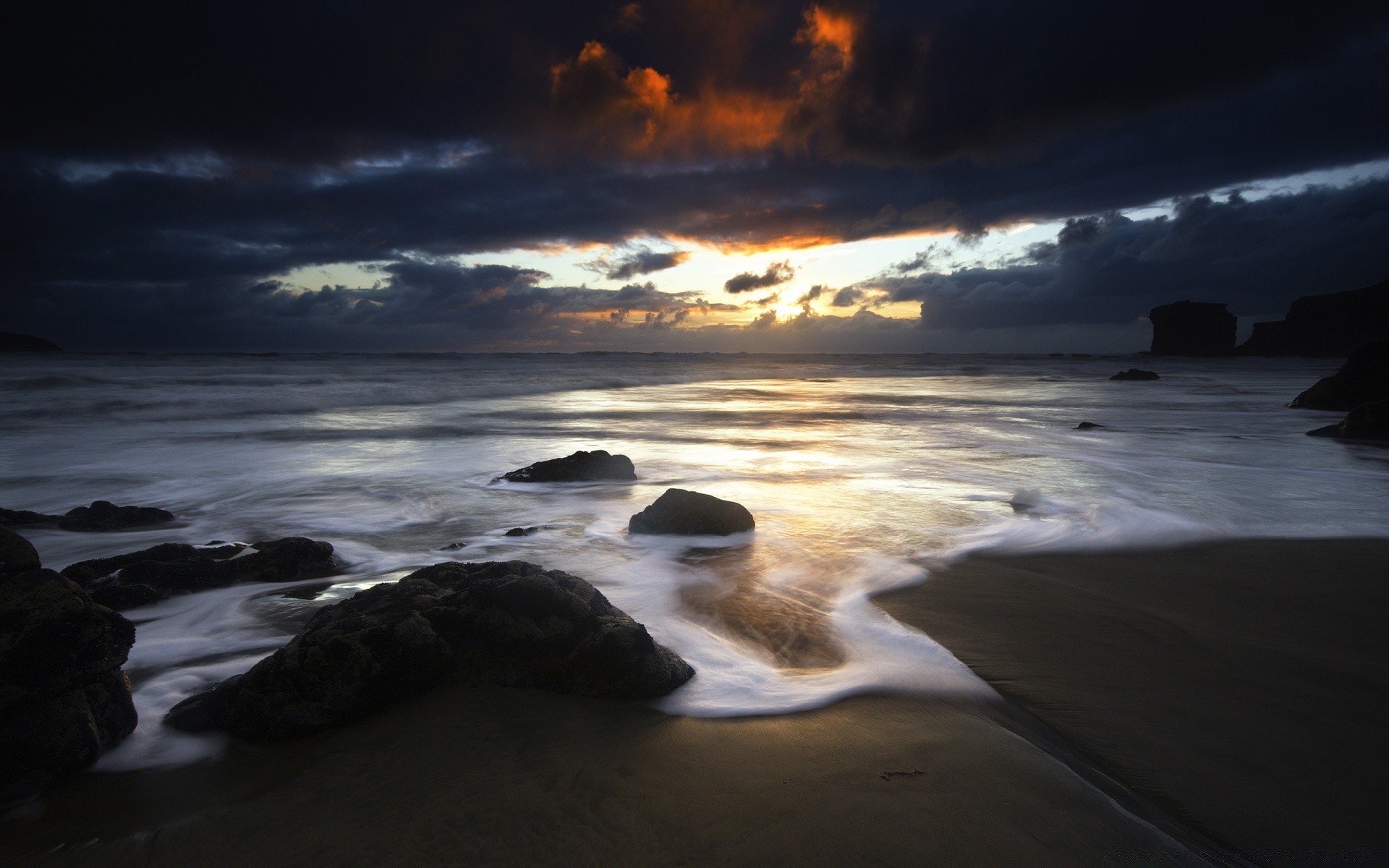 Tramonto sulla spiaggia oscura