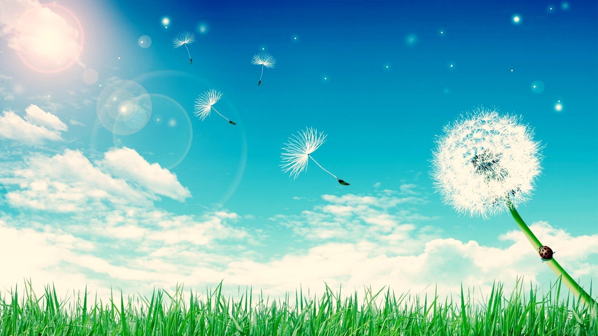 Cielo blu e nuvole bianche fiori gialli nel campo