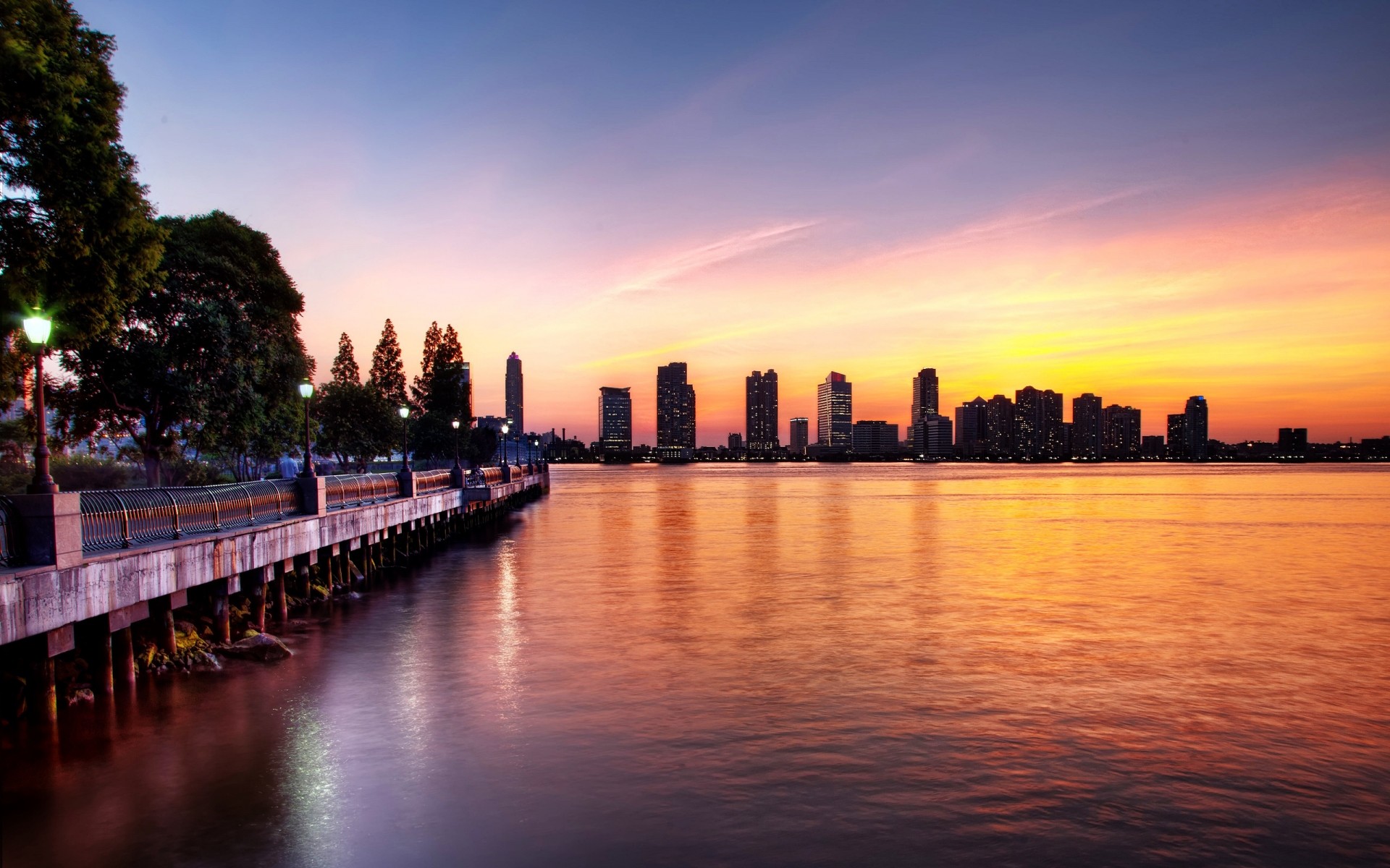 Alba nel cielo a causa delle nuvole vicino all'acquaAlba nel cielo a causa delle Nuvole vicino all'acqua