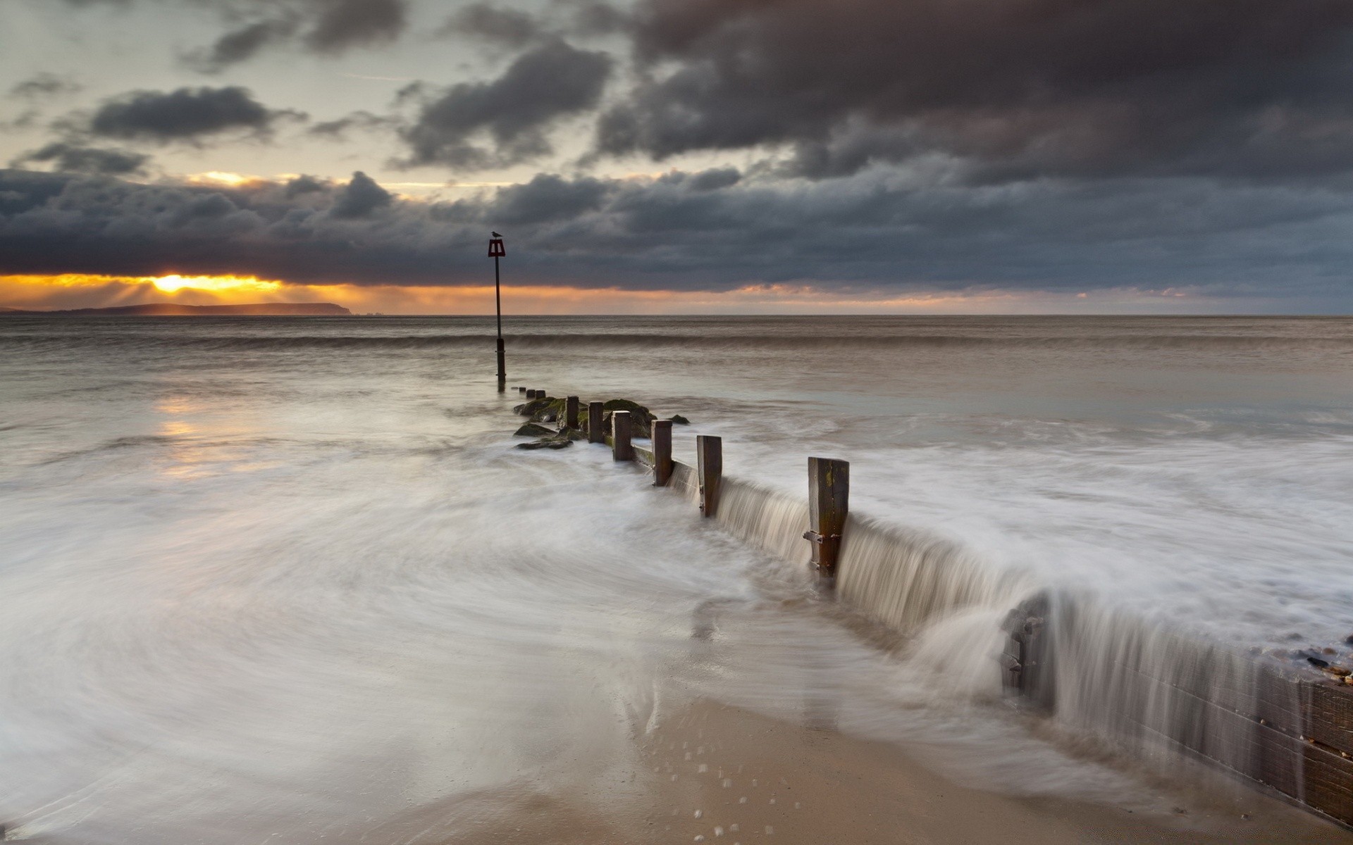 Spiaggia sabbiosa con massi rocciosi sullo sfondo del mare inquieto