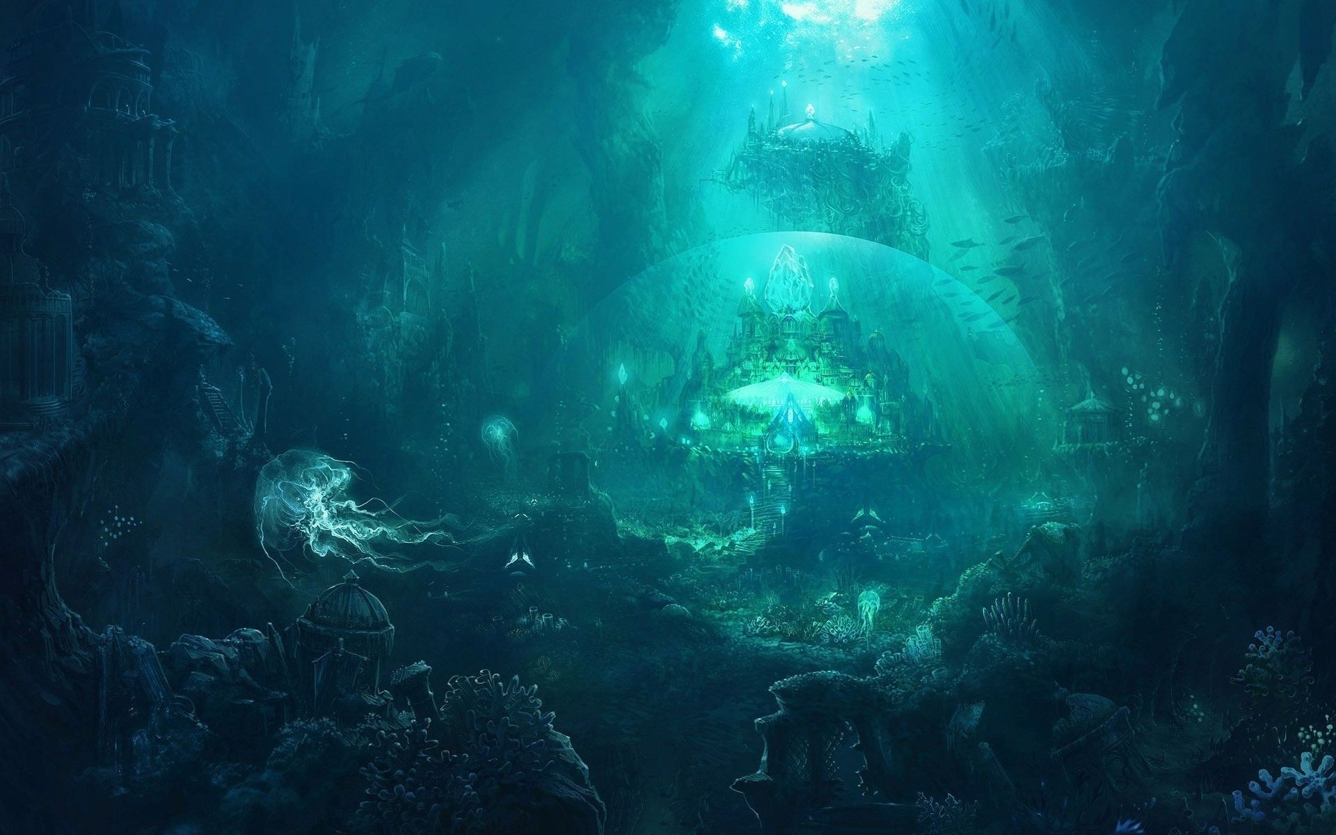 Misterioso mondo sottomarino dell'oceano in stile fantasyMisterioso mondo sottomarino dell'oceano in stile fantasy