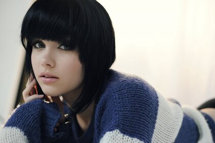 Ritratto di una bruna con il telefono