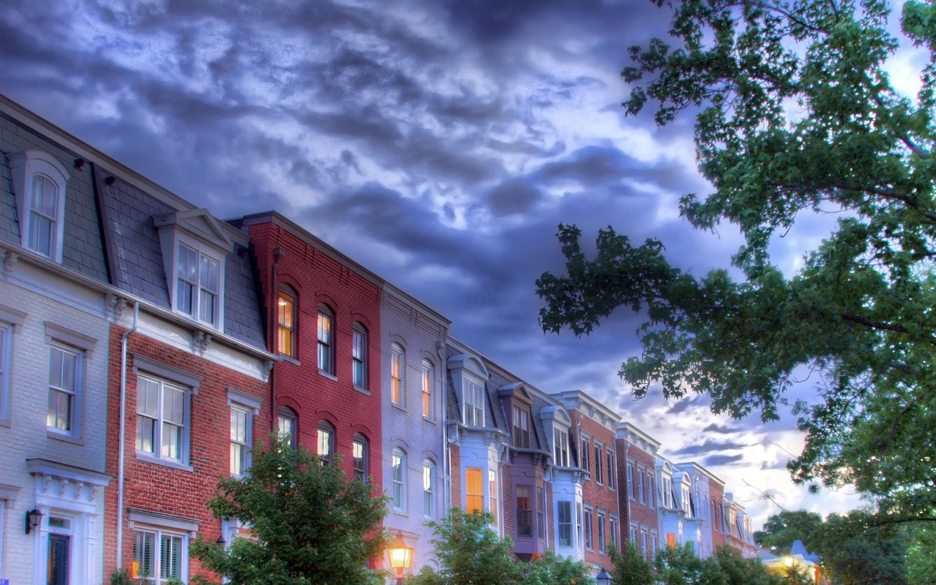 Cielo città sera tempesta luci