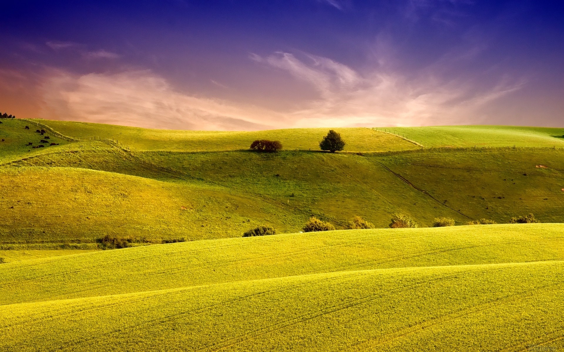 Favolosi prati soleggiati all'alba