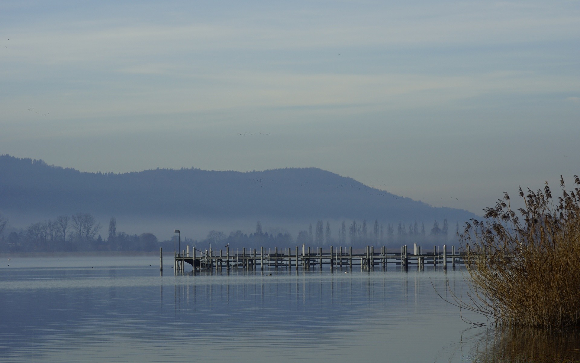 Terreno allagato e alberi scuri
