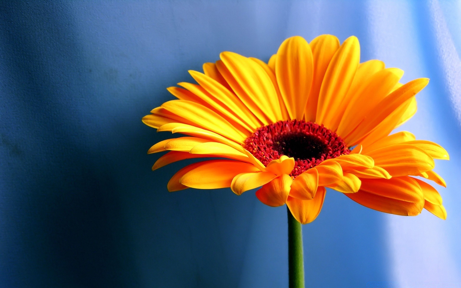 Fiore giallo brillante su tessuto blu