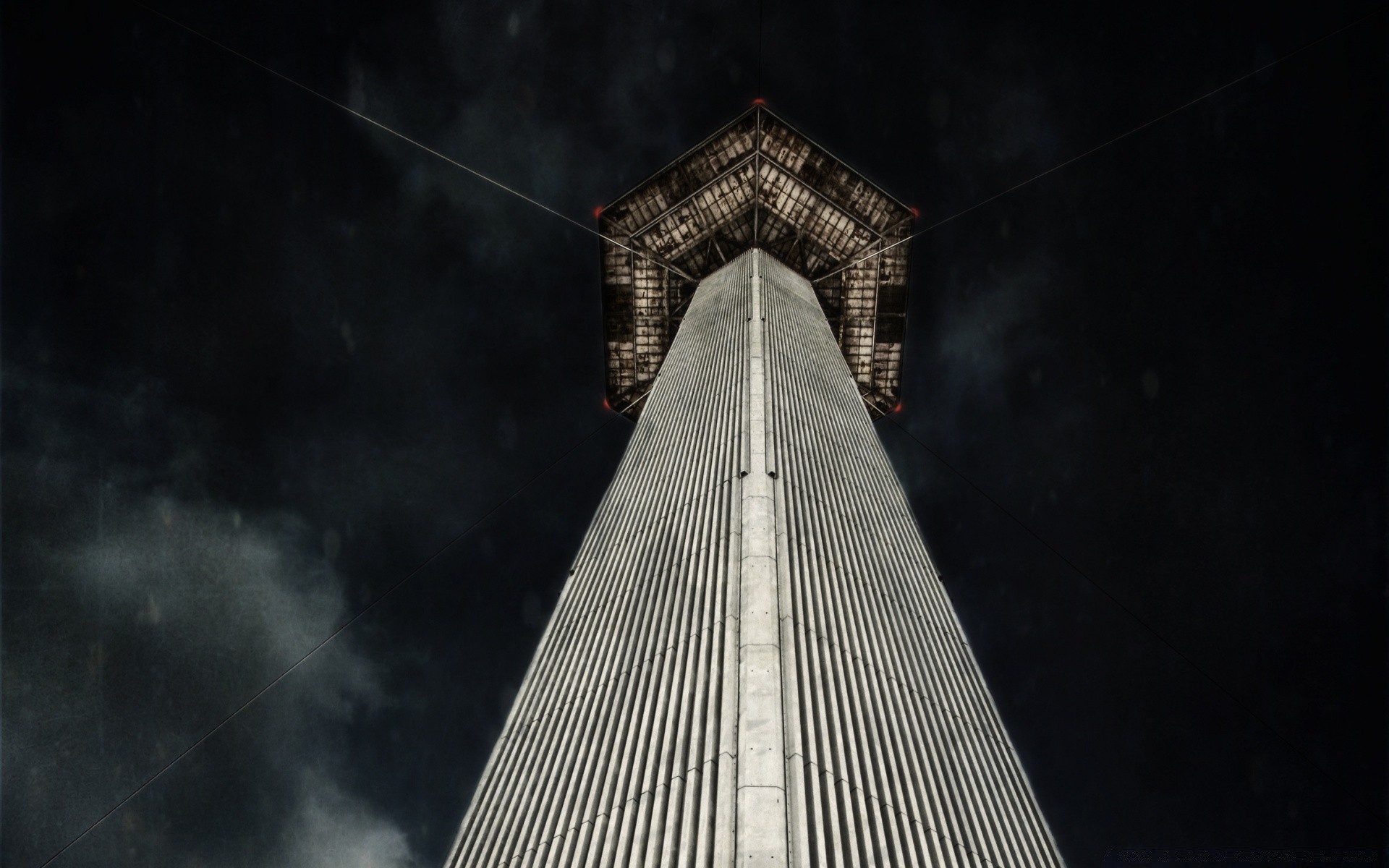 Il grattacielo sembra appoggiarsi al cielo notturno
