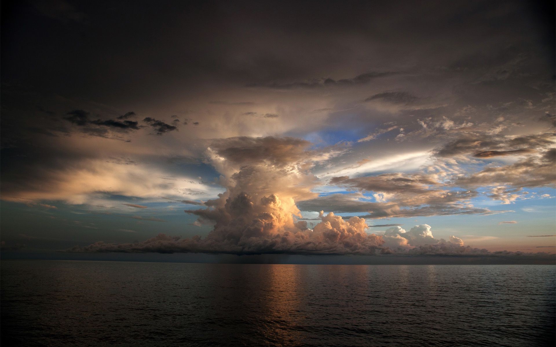 Cielo al tramonto con nuvole riflesse nell'acqua
