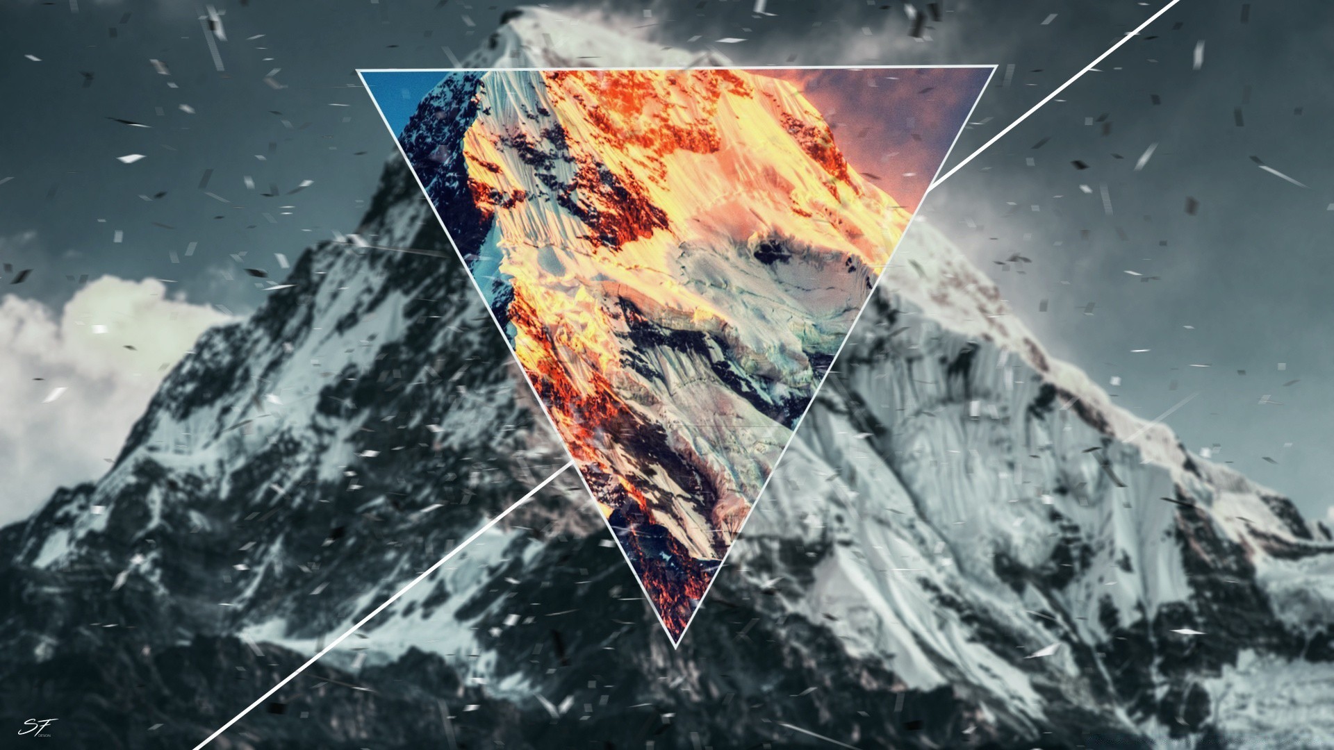 Triangolo con lettere all'interno su sfondo grigio-blu con striscia orizzontaleTriangolo con lettere all'interno su sfondo grigio-blu con striscia orizzontale