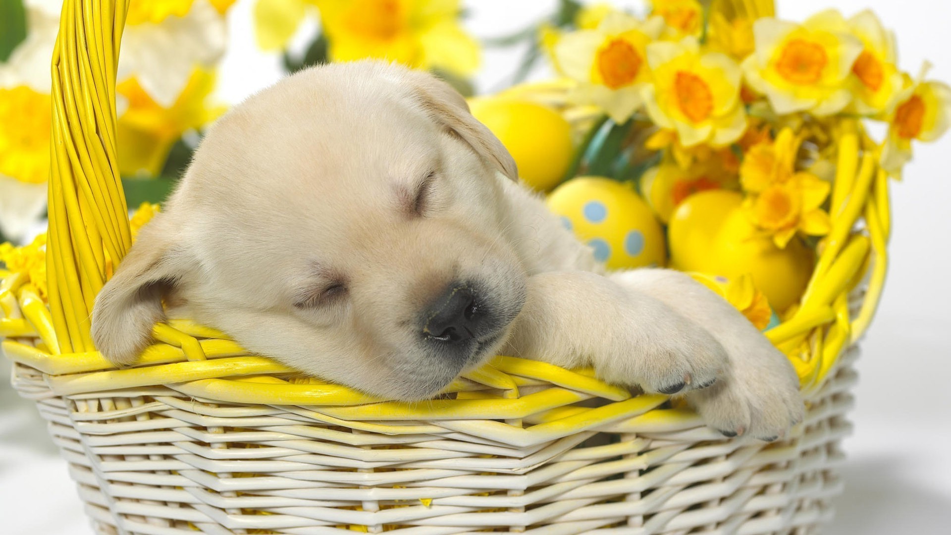 Cucciolo carino in un cestino per Pasqua