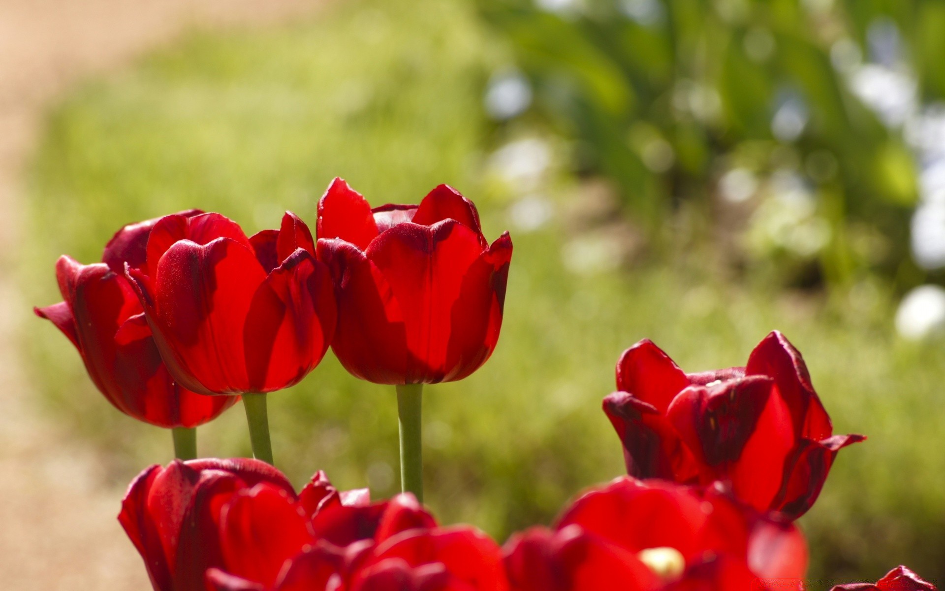 Tulipani rossi sotto i raggi del sole