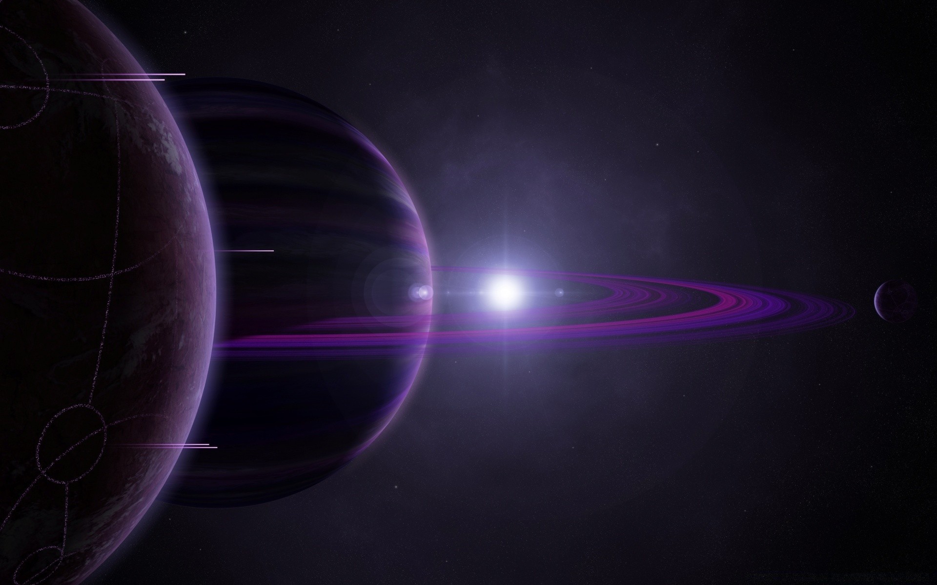 Luce appena visibile e un pianeta nella galassia in colori viola