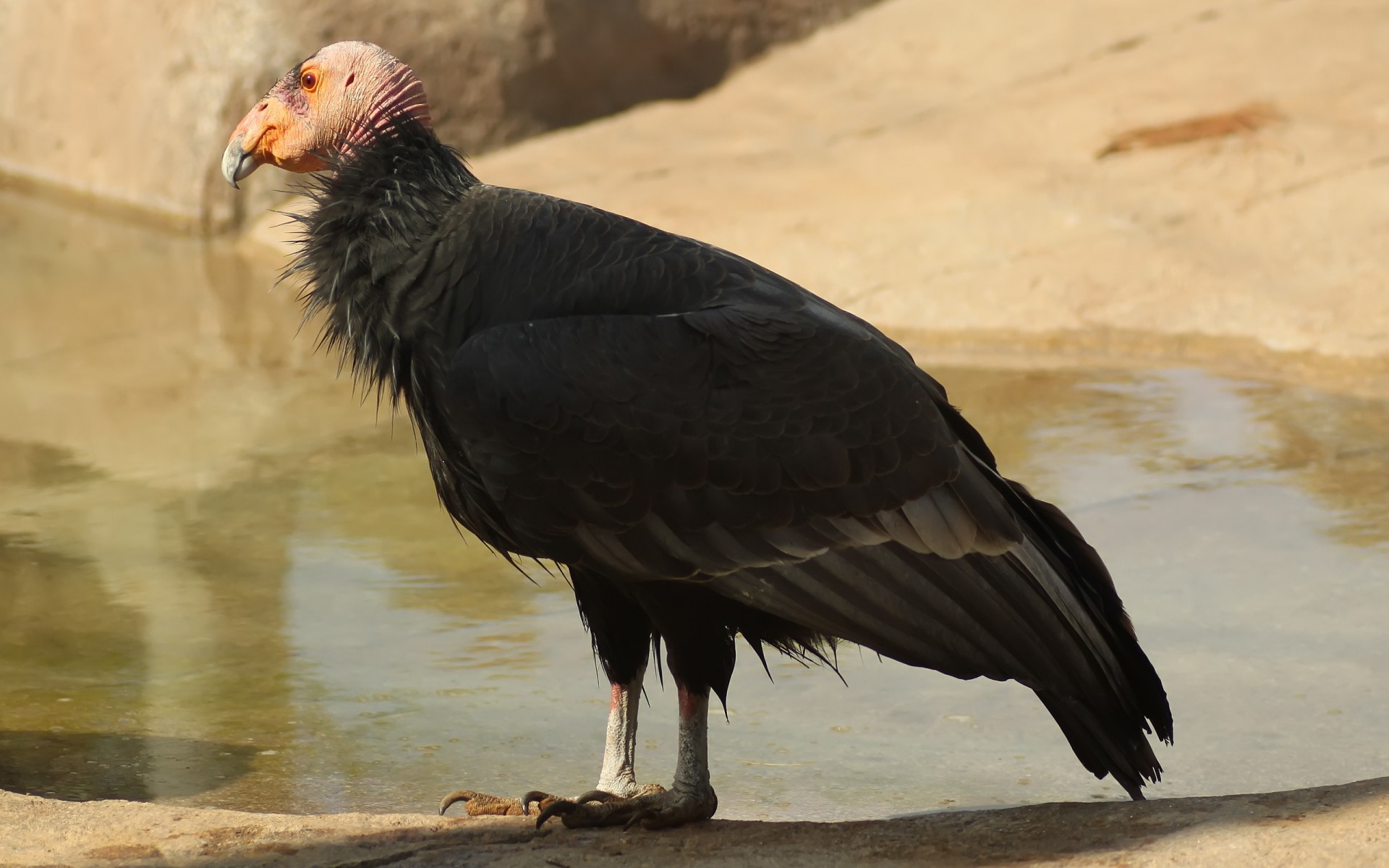 Uccello Raptor in piedi vicino all'acqua