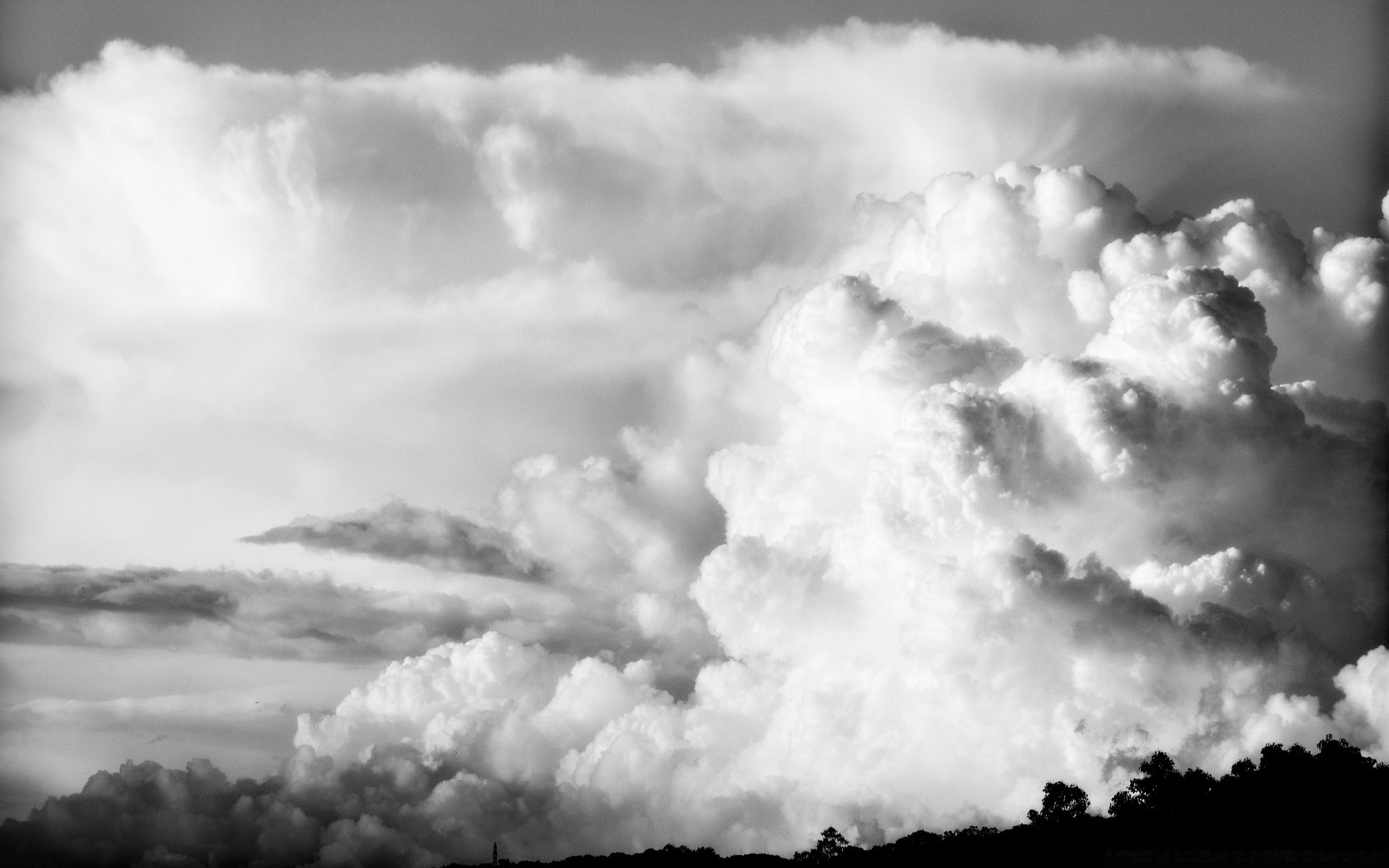 Paesaggio in bianco e nero della natura con foresta e nuvolePaesaggio in bianco e nero della natura con foresta e nuvole