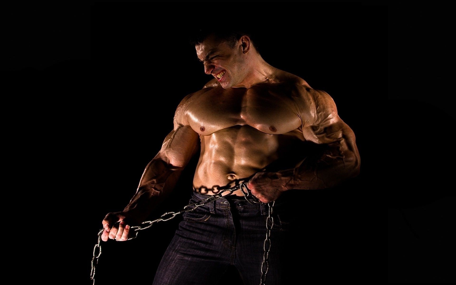 Giovane pompato con una catena
