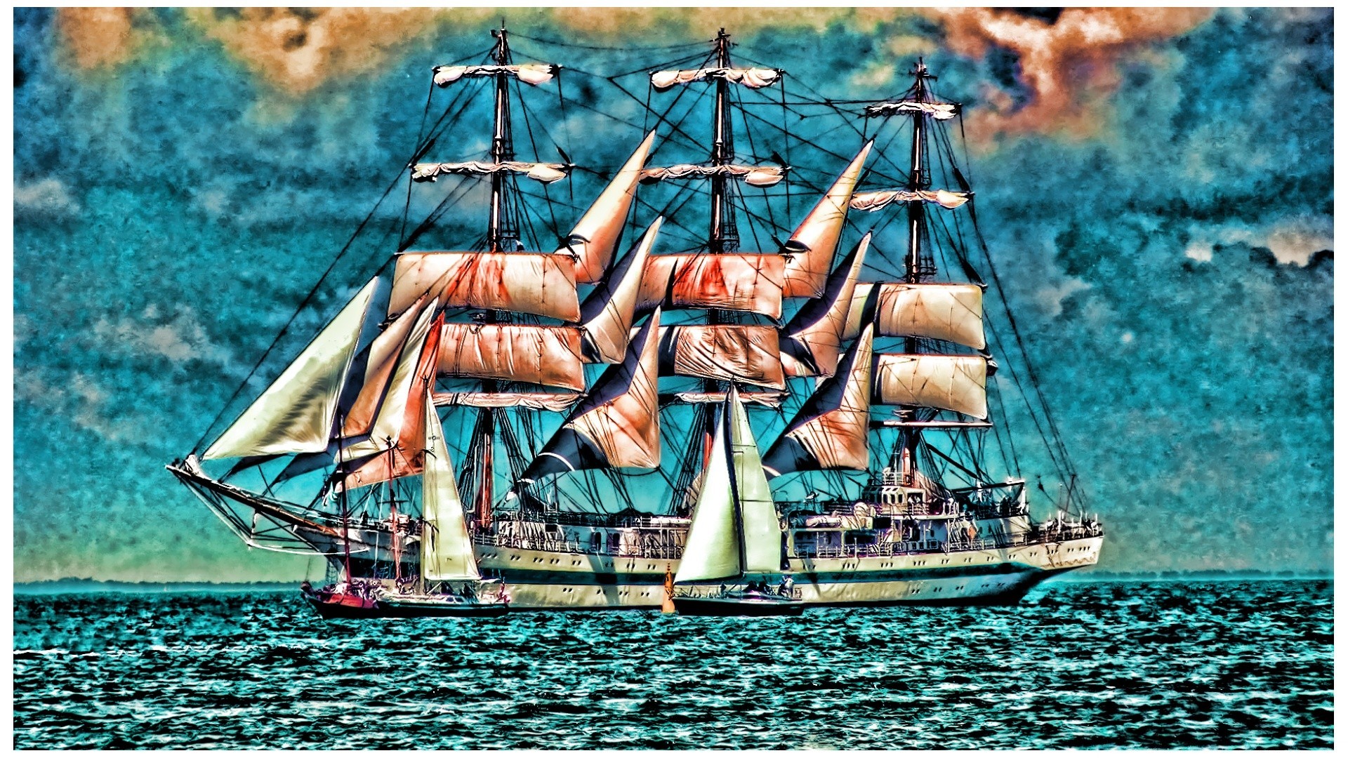 Tempesta in mare. Vela bianca. Navi con vele bianche