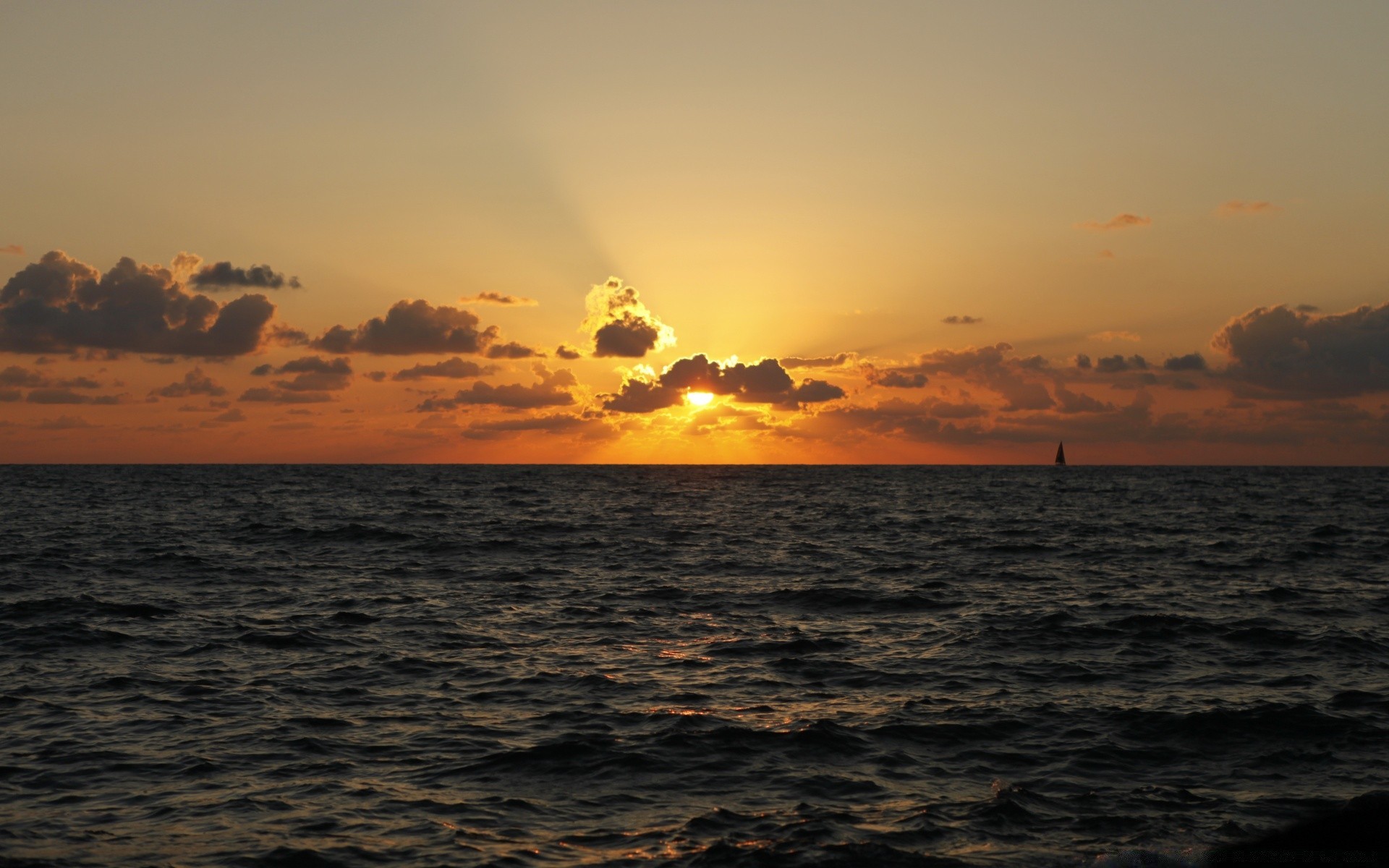 I resti del sole sono inghiottiti dalle nuvole al tramonto del cielo