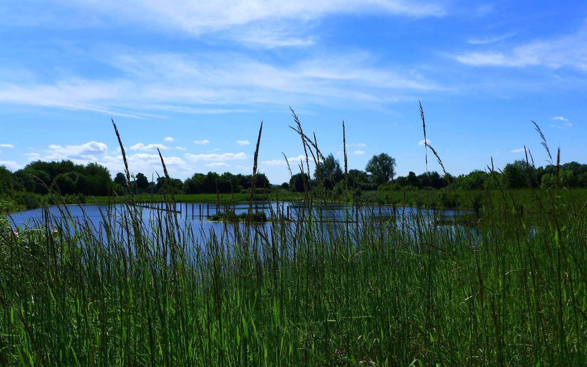 Paesaggio tranquillo di un lago perduto nell'erba