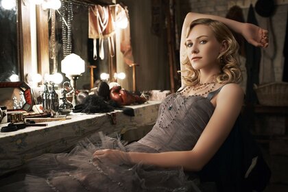Ragazza in un pene davanti allo specchio su una sediaRagazza in un pene davanti allo specchio su una sedia