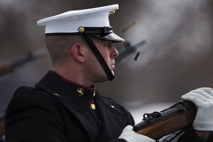 Militare in uniforme con le armi in mano