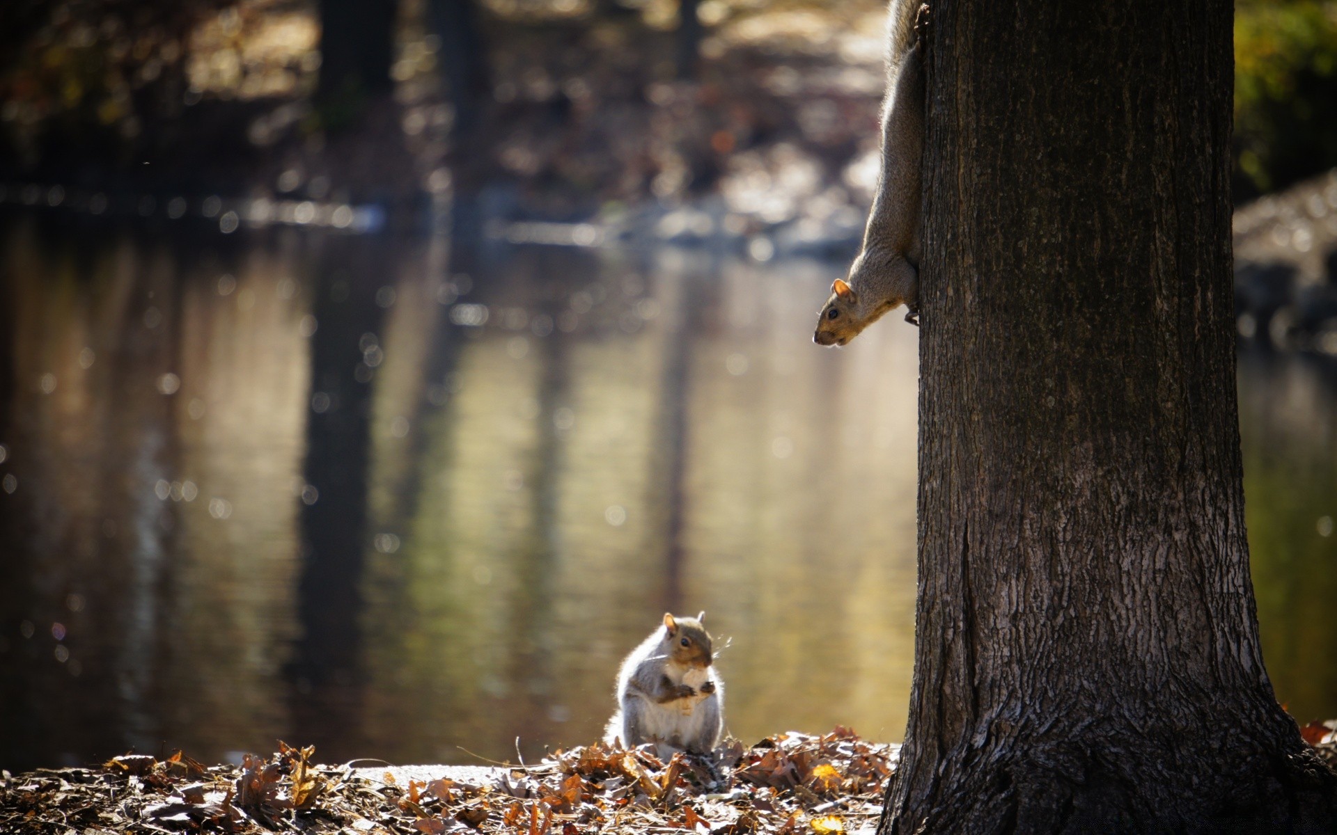 Due scoiattoli vicino a un albero nella foresta