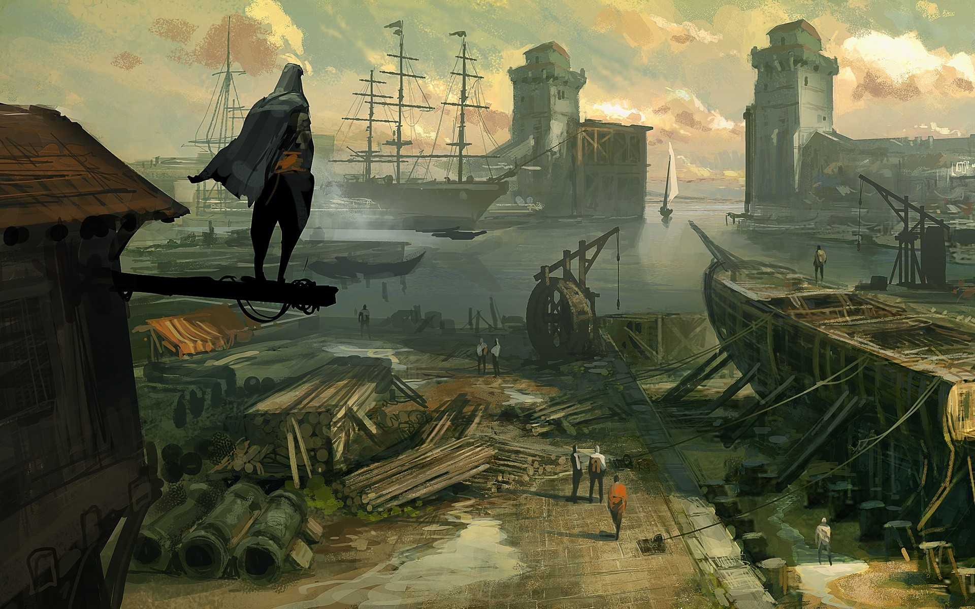 Un personaggio del gioco assassin's creed con una sciabola è sul tetto