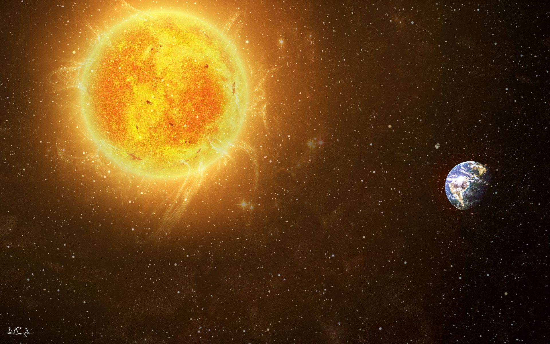 Il pianeta terra impallidisce sullo sfondo del sole