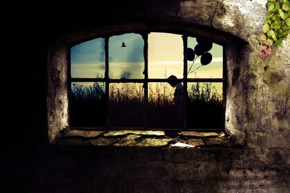 Vista dalla finestra di un edificio abbandonato del mistero dell'architetturaVista dalla finestra di un edificio abbandonato del mistero dell'architettura