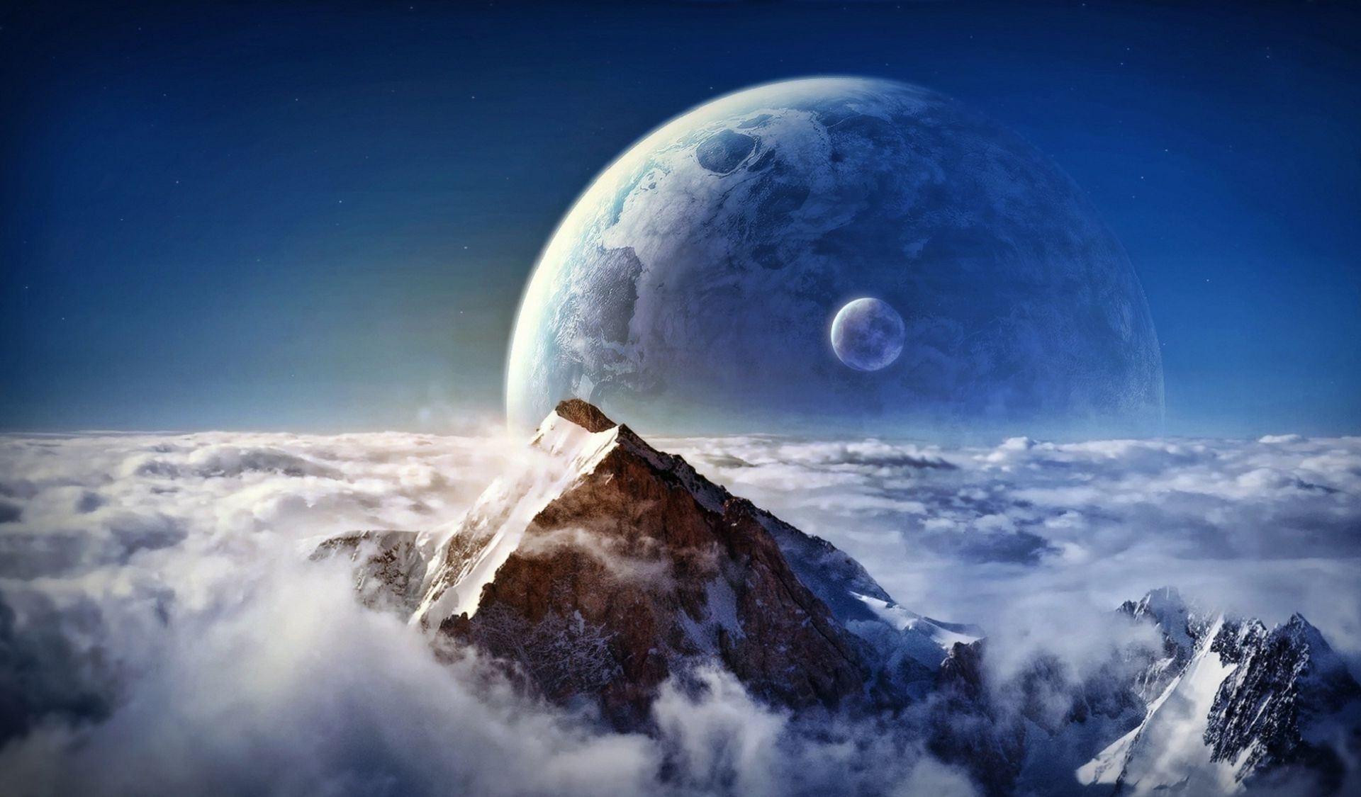 Vista dallo spazio di un'eclissi solare. Pianeta terra