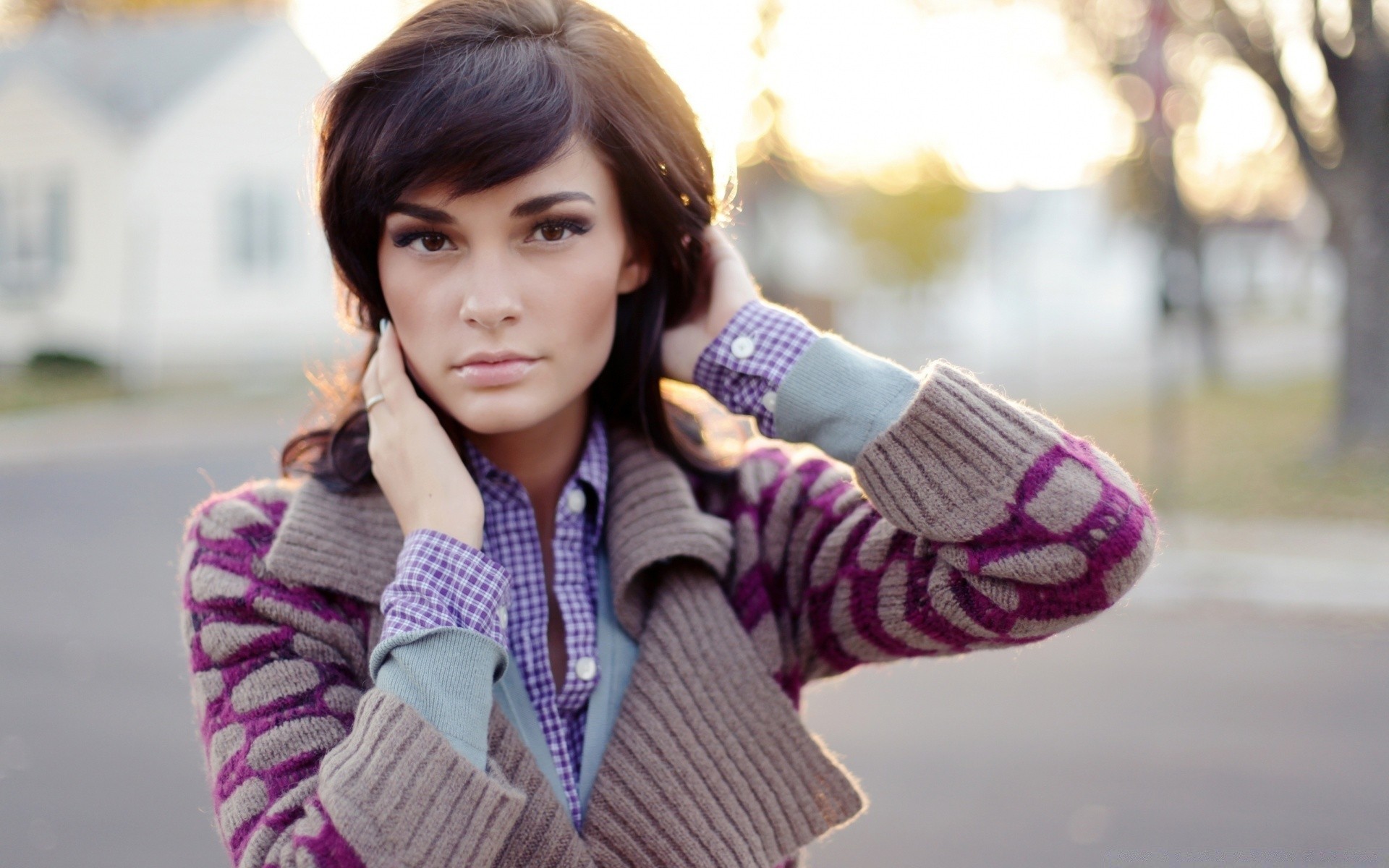 Ragazza adulta in posa all'aperto
