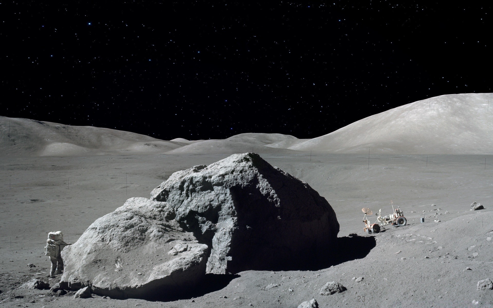 Fantastica montagna in mezzo alla foresta contro il cielo stellato