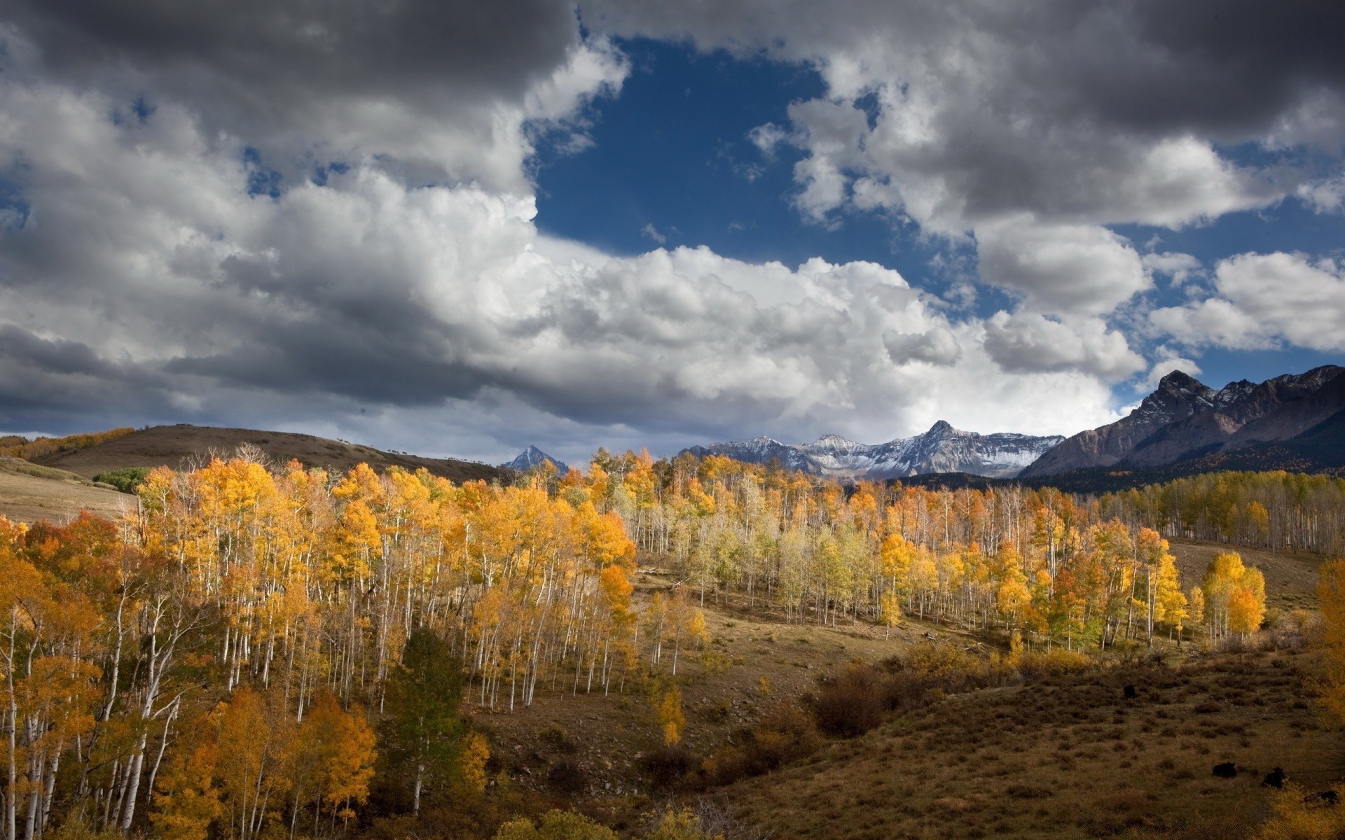 Autunno dopo con alberi e montagne