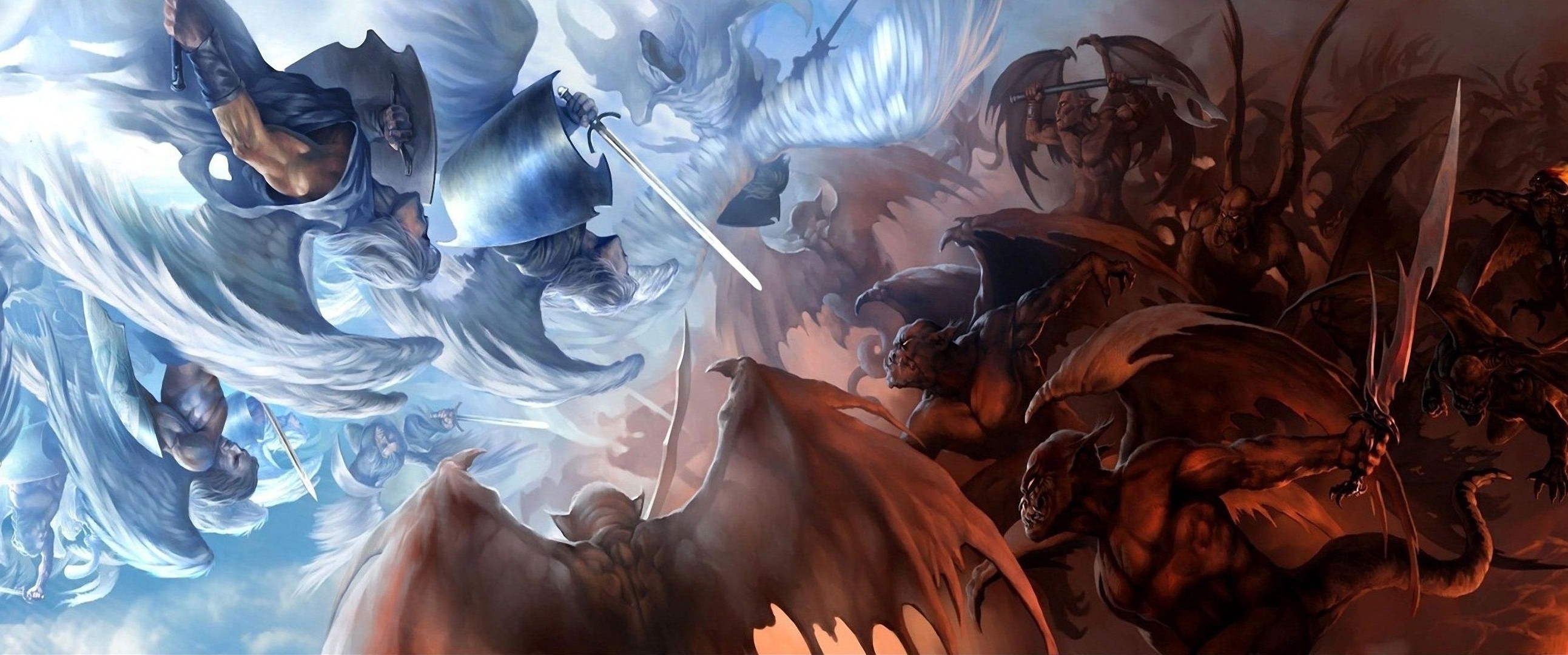 Arte bene male demoni sakimichan Battaglia angeli armi