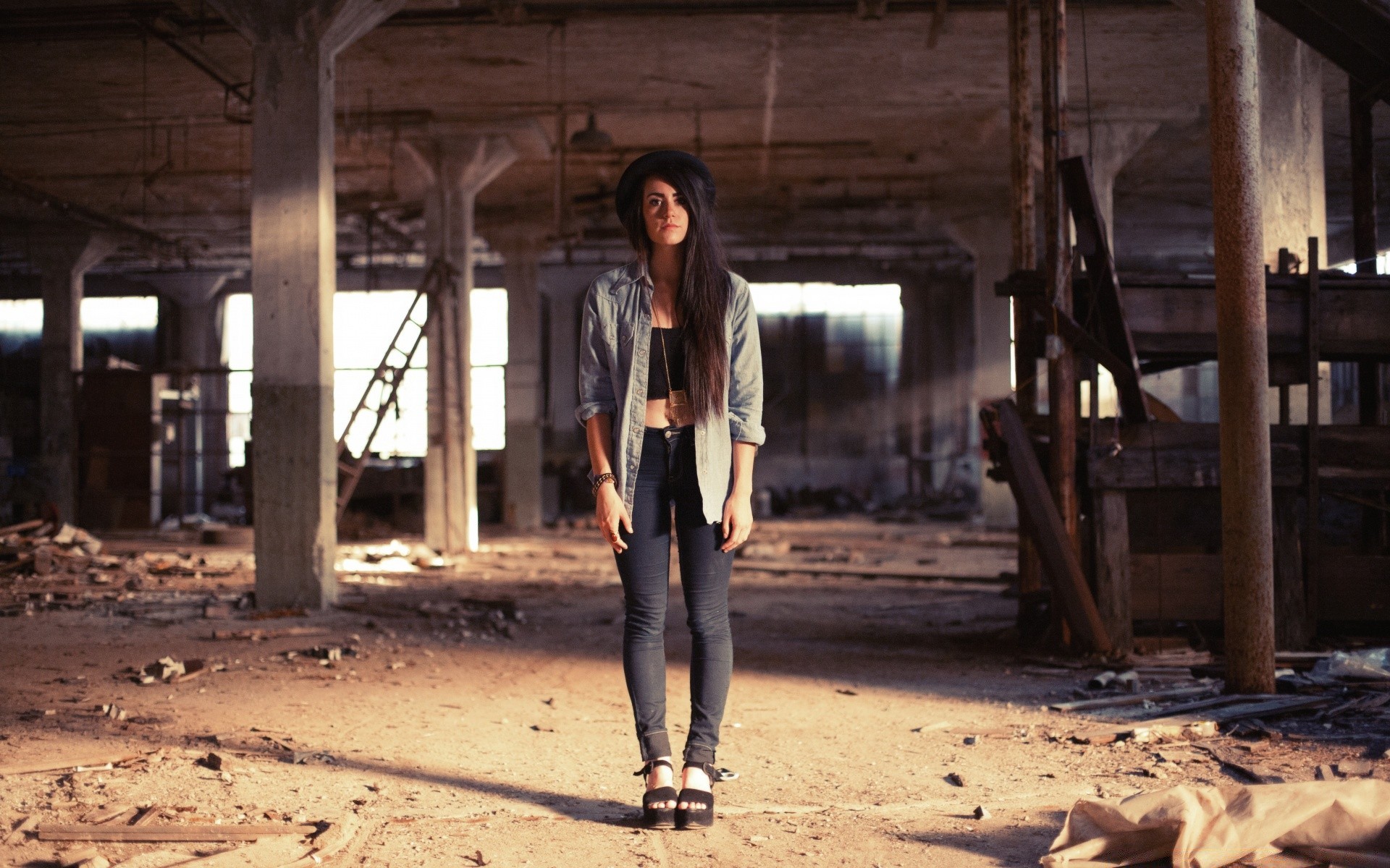 Uomo con maschera antigas in piedi in un edificio abbandonato